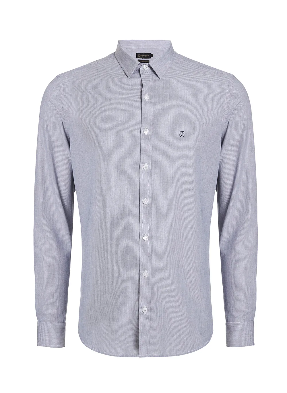 Confeccionada em tecido plano com padronagem em fio tinto, a Camisa possui modelagem slim fit, colarinho slim, vista com botões, mangas longas com abotoamento, punhos quadrados, detalhe da logo bordada e acabamento pespontado. Modelagem Slim Fit: Silhueta levemente mais justa. Colarinho Slim: Visual compacto, estrutura leve com uma proposta jovem. O Sou ABR permite a rastreabilidade total de peças em algodão, garantindo a certificação socioambiental da origem da fibra e mostrando toda a cadeia responsável pela produção.