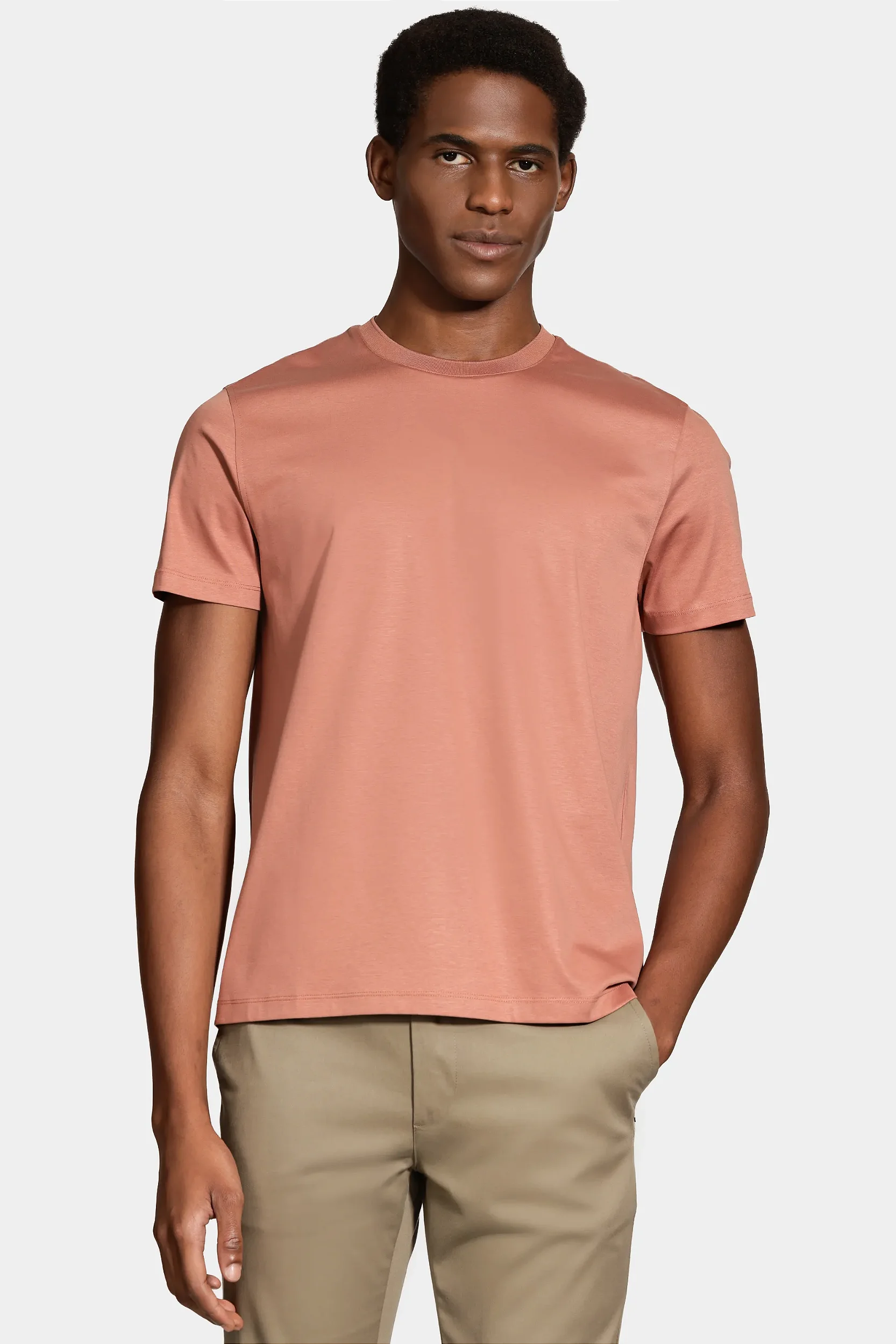 Camiseta confeccionada em tecido nobre que combina algodão, modal e seda, proporcionando toque extremamente macio e leve ao vestir. A presença da seda garante um brilho discreto e elegante, elevando a peça a um patamar premium. Sua modelagem slim favorece o caimento perfeito, unindo conforto e versatilidade. Ideal para ocasiões que exigem elegância casual, mantendo a sensação de frescor ao longo do dia.