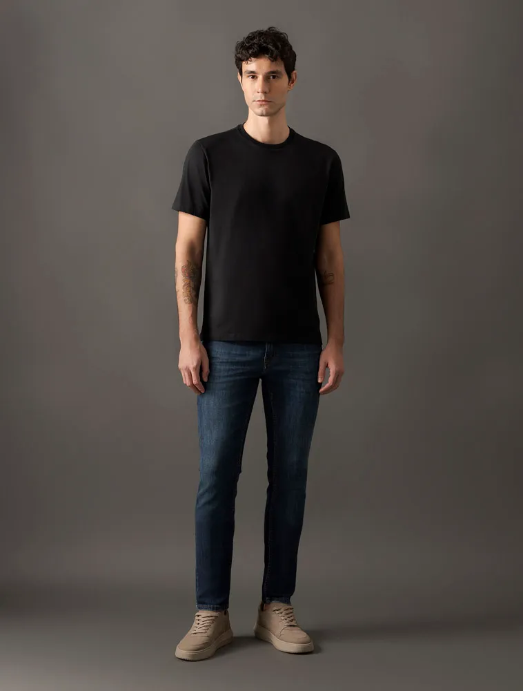 Camiseta Calvin Klein manga curta de malha de algodão pima peruano, gola ribana e logo exclusivo da marca. Modelagem básica.