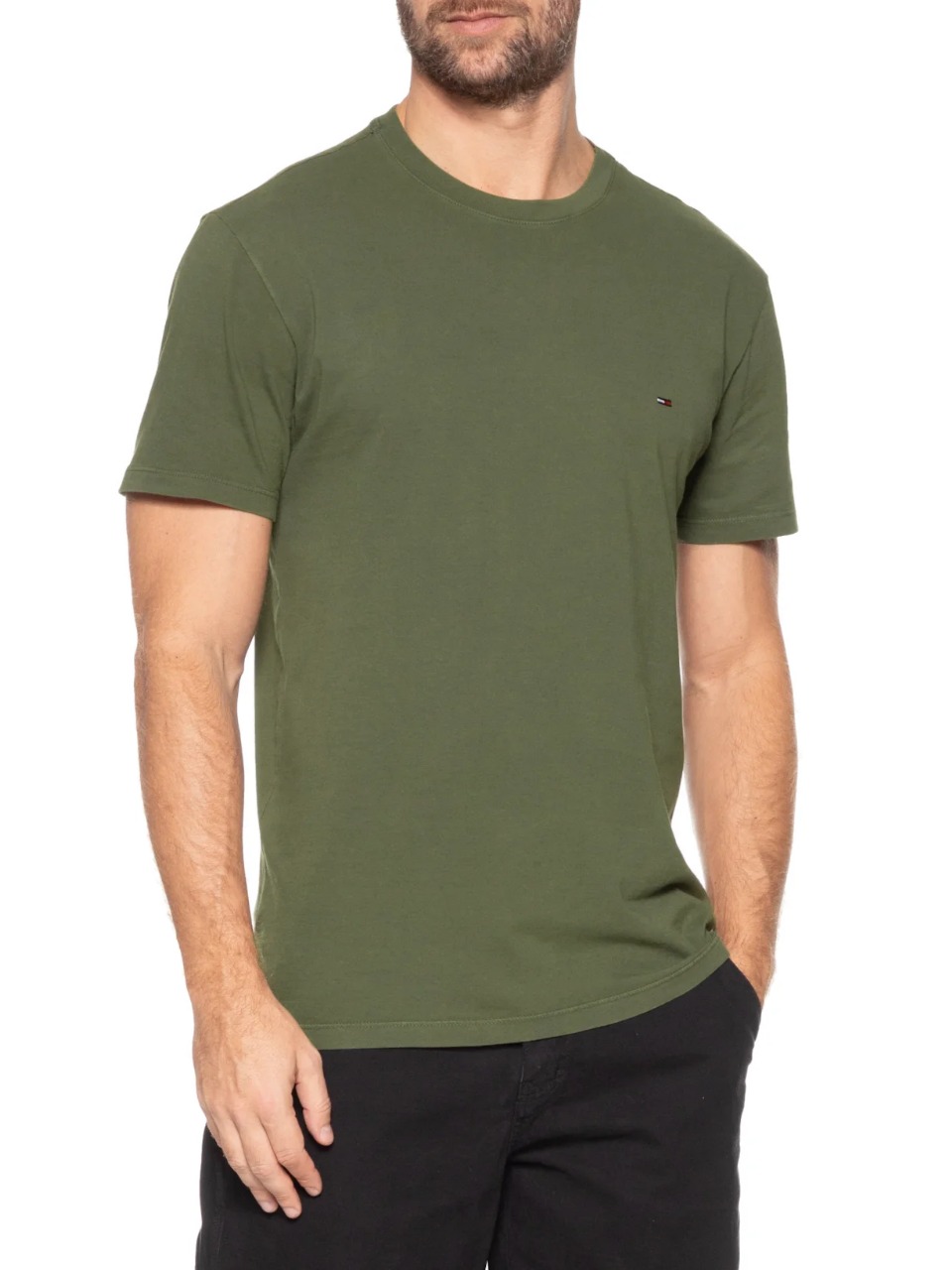 Aposte nesta camiseta de algodão puro que funciona como item essencial em qualquer guarda-roupa para compor looks descontraídos, esta camiseta clássica possui gola careca e a icônica bandeira Tommy Hilfiger bordada no peito.